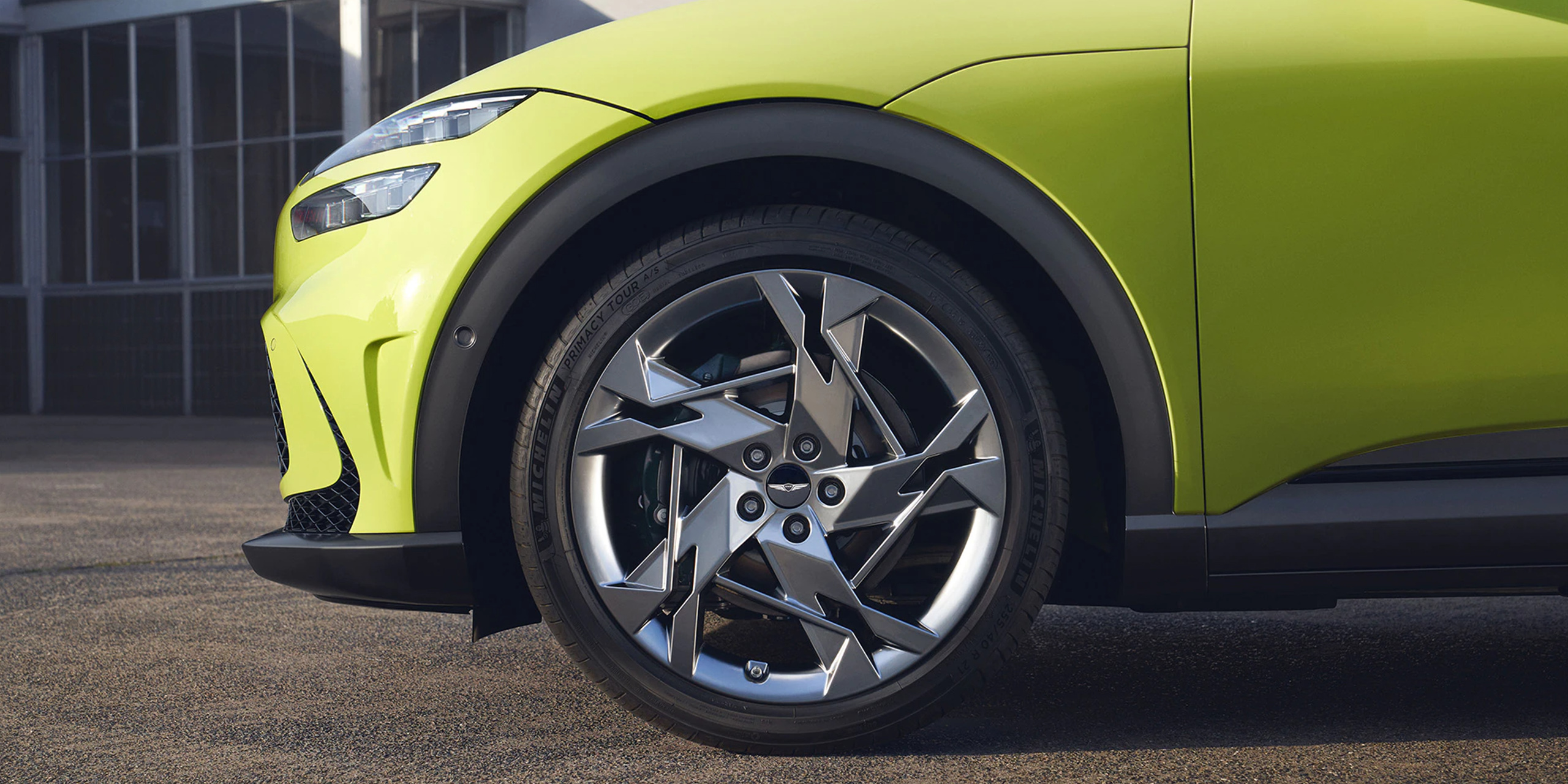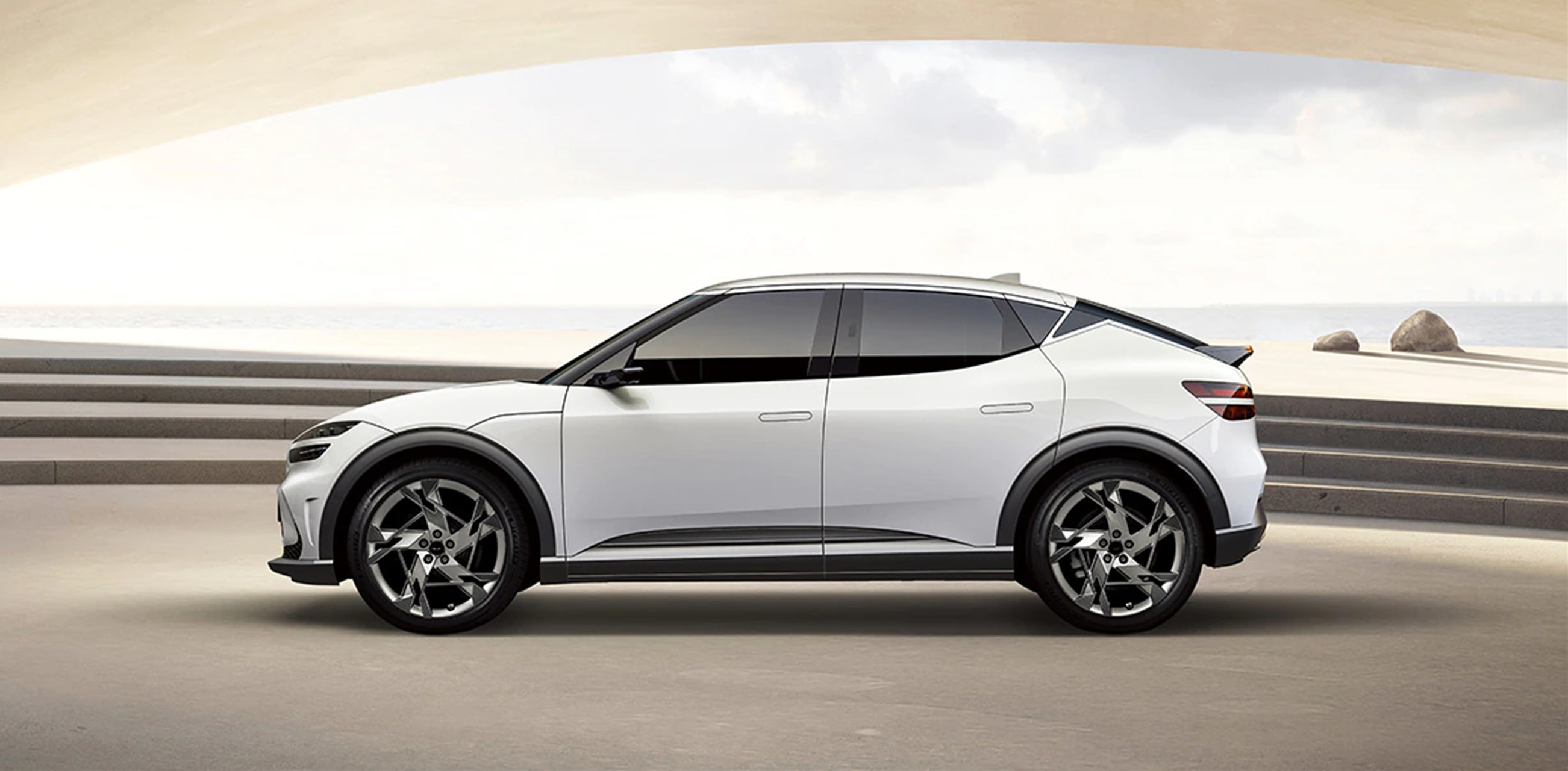 기존의 제네시스의 상징적 요소인 쿼드램프가 가장 큰 전면부의 특징이며 EV(EV : Electric Vehicle) 모델임에도 불구하고 전면부 하단에 5각형 그릴 형태로 적용한 것도 특이한 점이라고 할 수 있겠다. 그로인해 중앙이 허전해 보이는 느낌이 들기도 하나 제네시스라는 브랜드 네임에 맞게 엠블럼이 존재감을 유지해주므로써 공간을 채웠다고도 할 수 있겠다.
