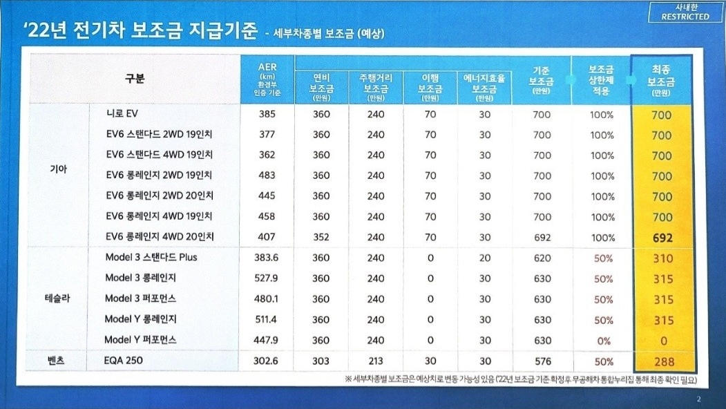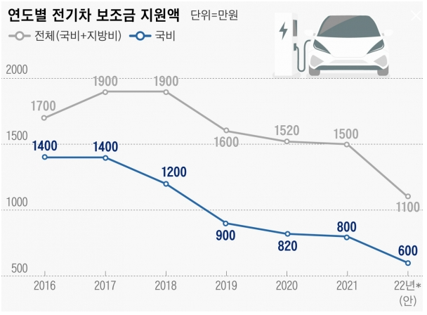 2022년 전기차 보조금 지원 대상 차량가격 인하?